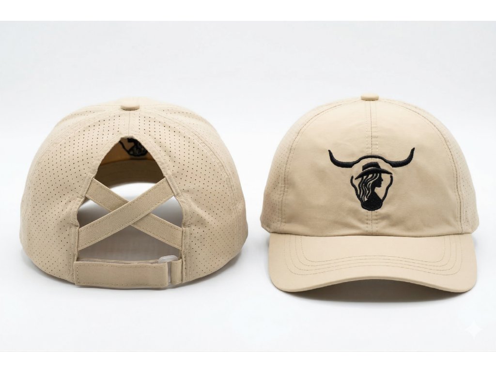 „Ukaž svůj styl a buď nepřekonatelná – Cowgirl Czech s otvorem pro culík drží vlasy pod kontrolou a přináší svobodu každému tvému dni.“