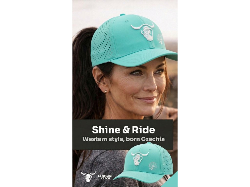 Shine & Ride: Milujeme věci, které mají jiskru. Naše kšiltovky s glitter efektem házejí odlesky při každém pohybu. Protože věříme, že i na ranči můžete být nepřehlédnutelná.
